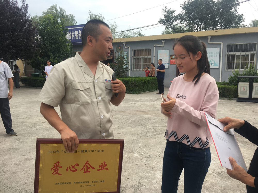 8.25日,金秋開學之際,由淇濱區委統戰部、共親團淇濱區委、淇濱區工商聯組織愛心企業舉行2018年度“點亮希望,圓夢大學”助學金發放活動。我公司銷售部代表張經理參加了此次助學捐贈活動。